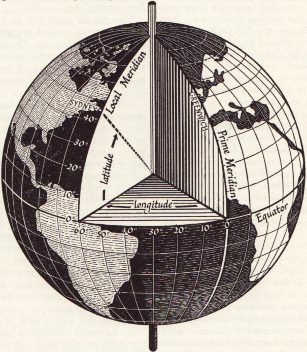 Latitude/longitude graphic from David Greenhood’s classic book Mapping.