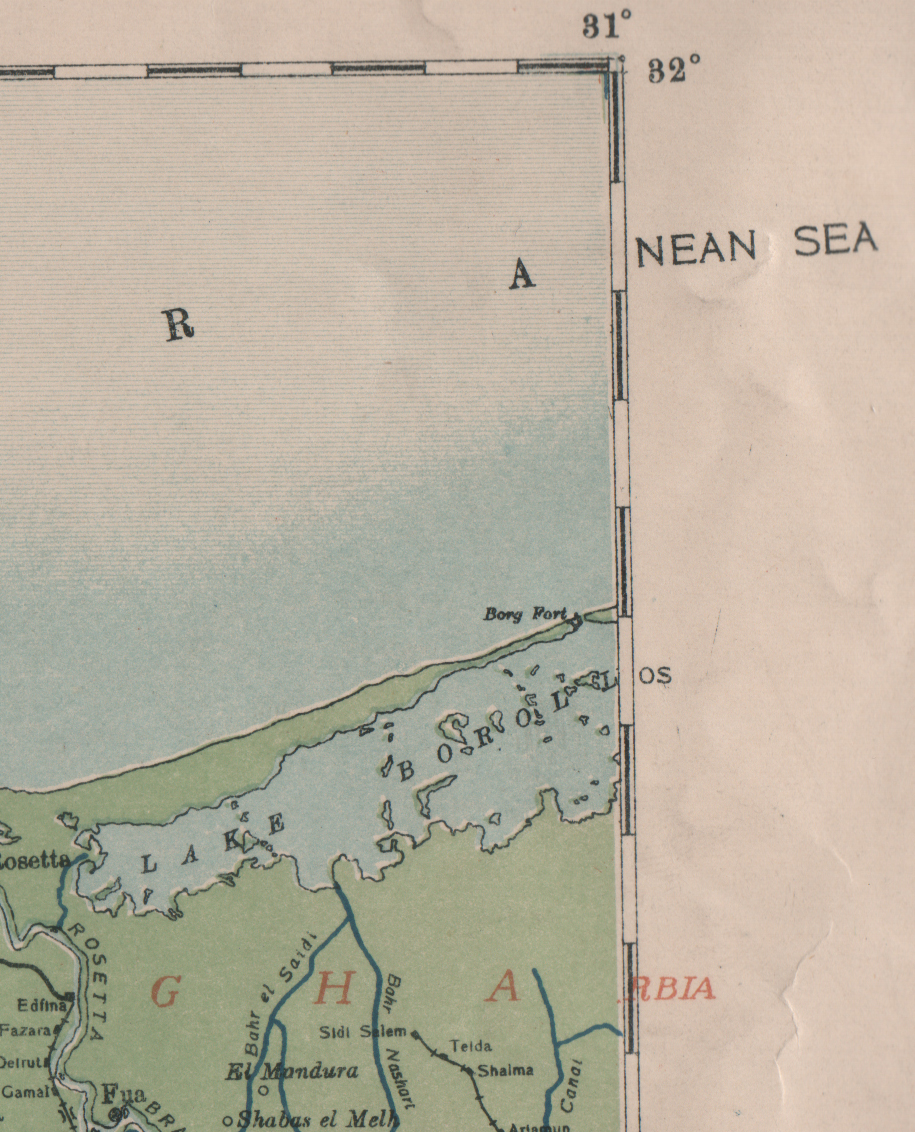 Note the type leaking over the map border (Mediterranean, Lake Borollos, Gharbia)