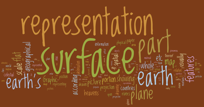 307) A representation of the surface of the earth or any part of it (Burlington dictionary [Bridlington, 1994]).