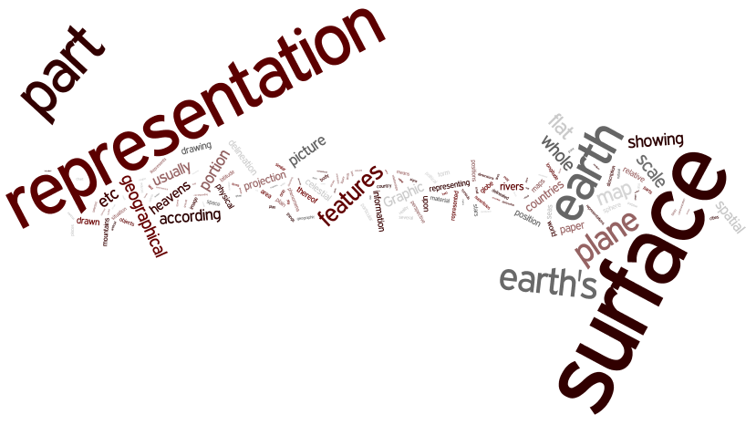 250) Drawing or representation on paper etc. of the earth’s surface or part of it, showing countries, oceans, rivers, mountains etc.; representation of the sky showing positions of the stars etc. (A.S.Hornby (ed.), The Oxford paperback American dictionary (Oxford, 1986; 1st ed. 1983)).