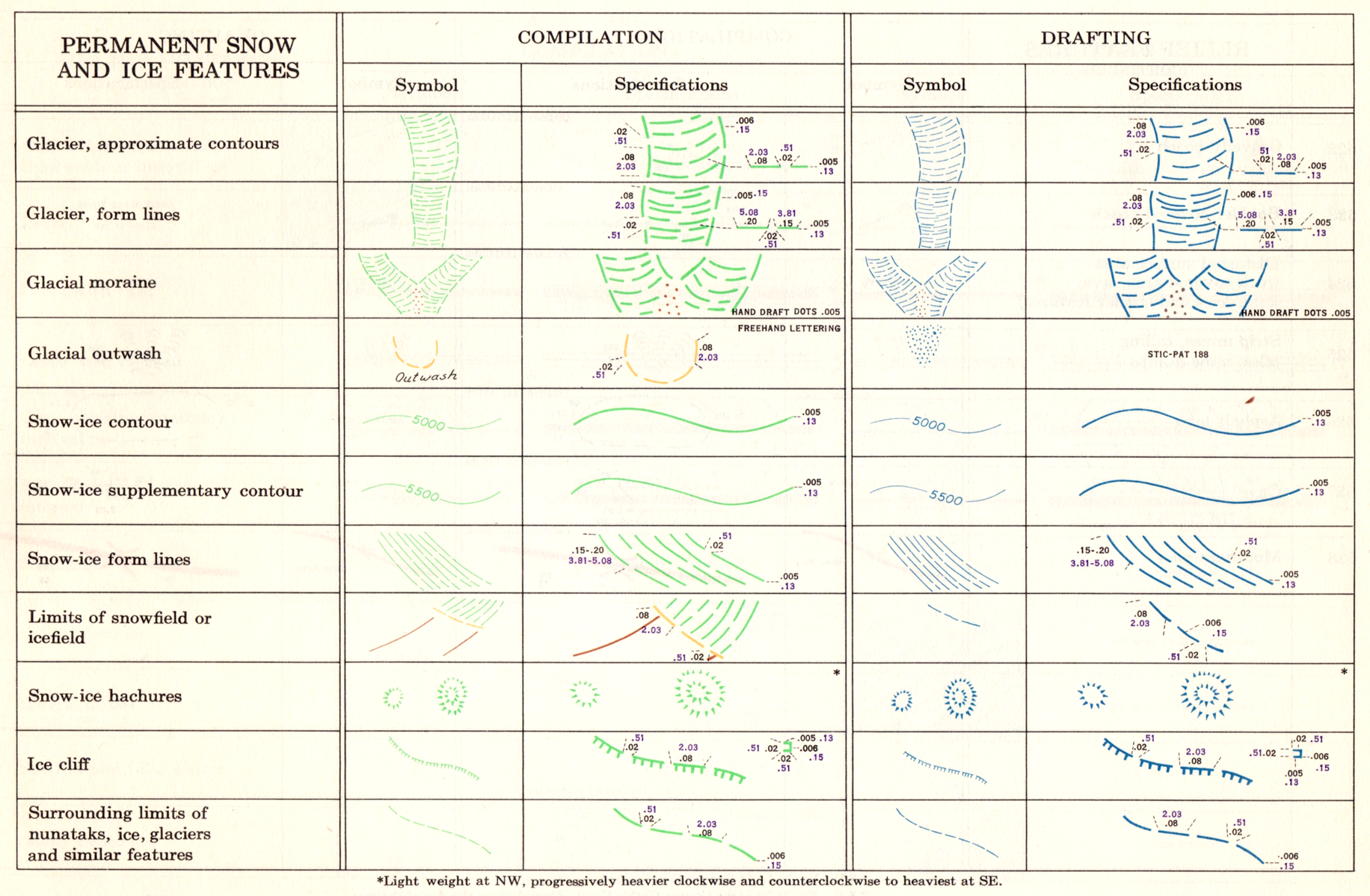 The entire page 22 of the Army Map Service Symbols for Small Scale Maps, including specifications for permanent snow and ice features is linked below: